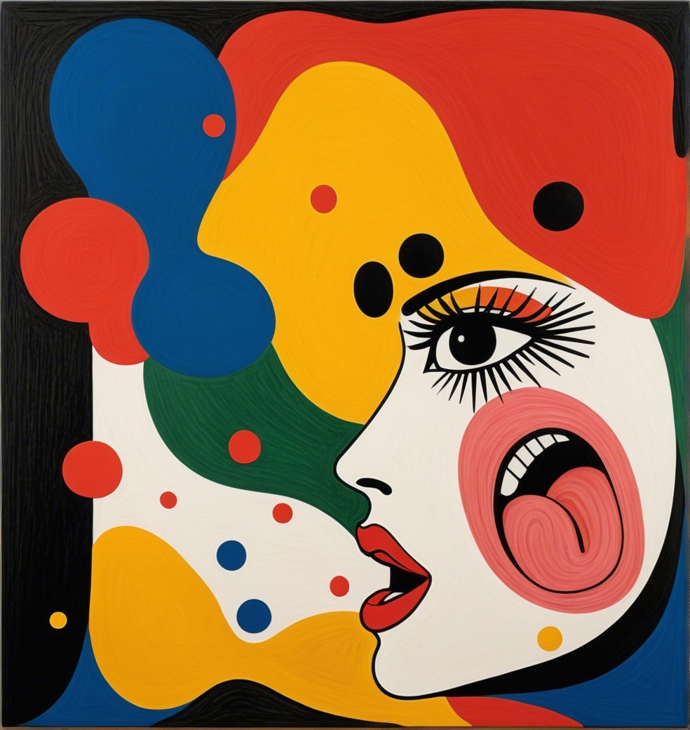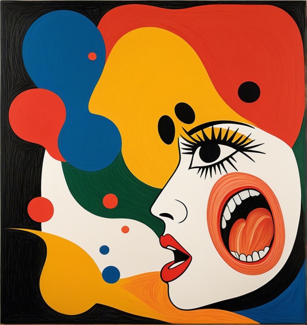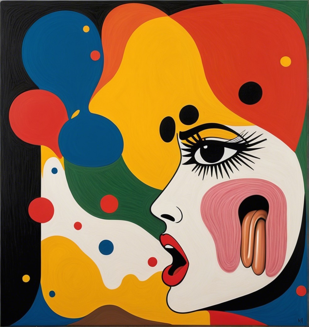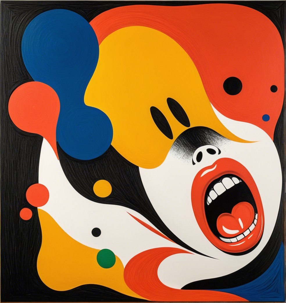 Artistic statement: Fusing the cosmic abstraction of Joan Miró, the pop-cultural impact of the Rolling Stones’ iconic lips, and the existential force of Munch’s The Scream, this piece reimagines visual expression as orbiting energy. The scream becomes a symbol of rebellion, pain, and transcendence — suspended in a dream-space of color and form, both playful and profound.