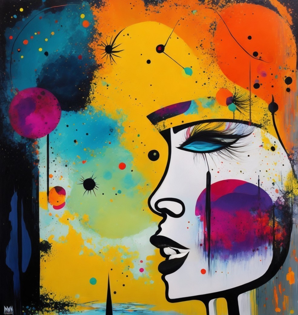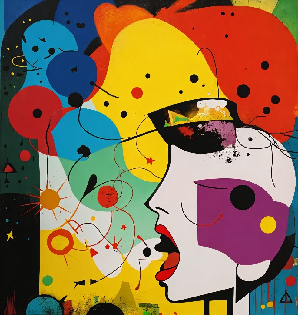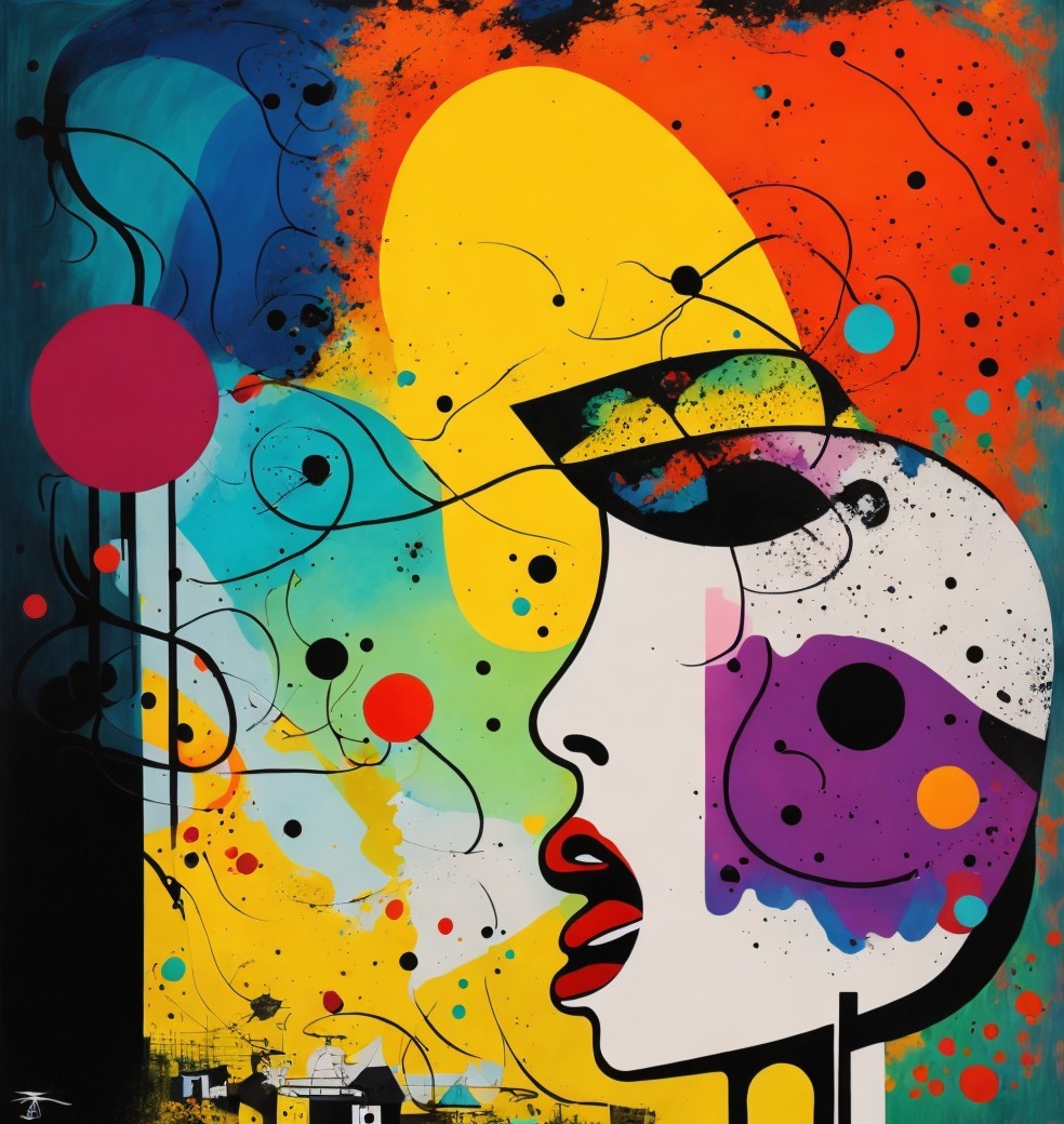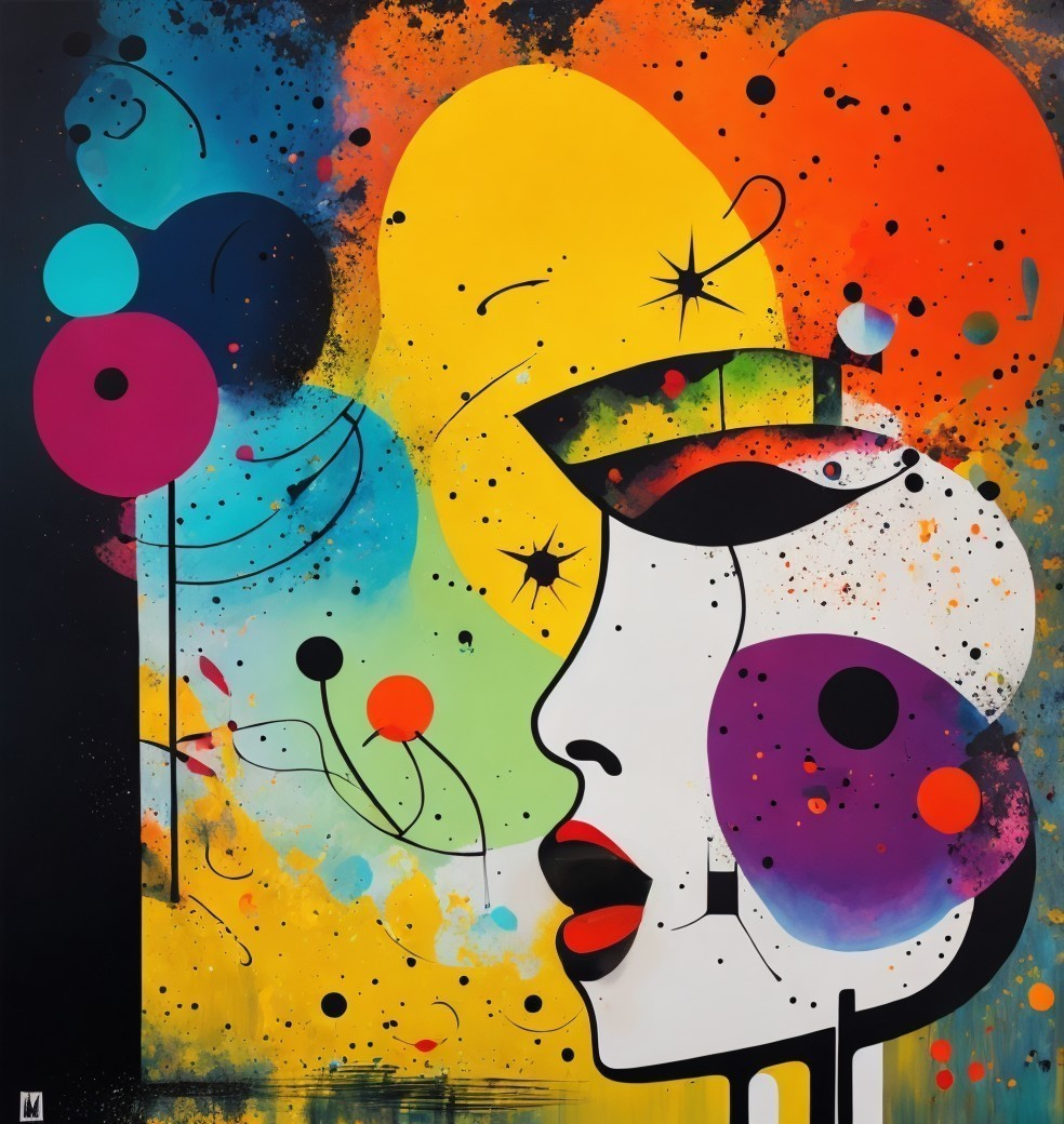 Artistic statement: Fusing the cosmic abstraction of Joan Miró, the pop-cultural impact of the Rolling Stones’ iconic lips, and the existential force of Munch’s The Scream, this piece reimagines visual expression as orbiting energy. The scream becomes a symbol of rebellion, pain, and transcendence — suspended in a dream-space of color and form, both playful and profound.