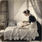 Young Woman Sewing by a Sunlit Window in Classic Room