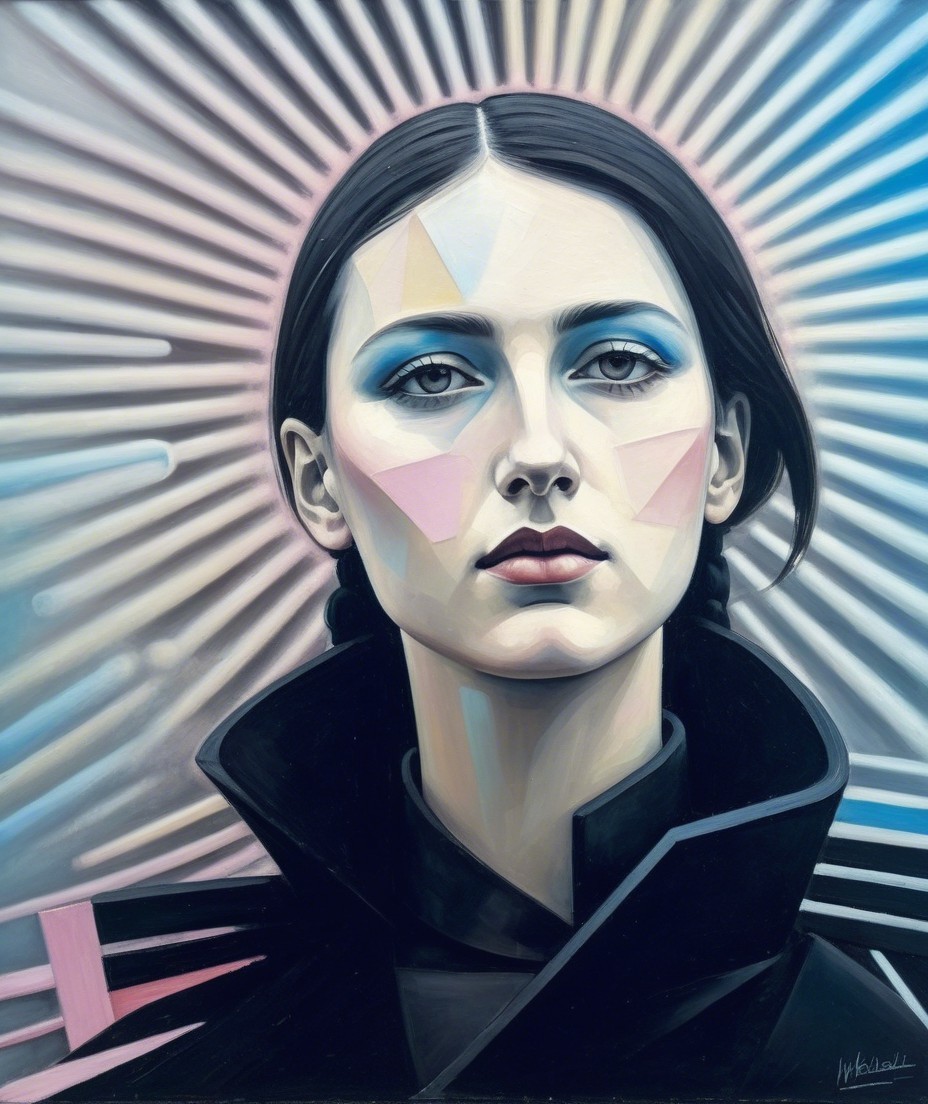 Prompt: Oil painting by Wassily Kandinsky and Kazimir Malevich. Light composition with a great number of delicate tones which often flow into each other. Light cold delicate colors with dominant pink, yellow, blue and black, pencil sketch, naive art, 16k, primitivism, multiple exposure, multilayer, multilayered three-dimensional drawing