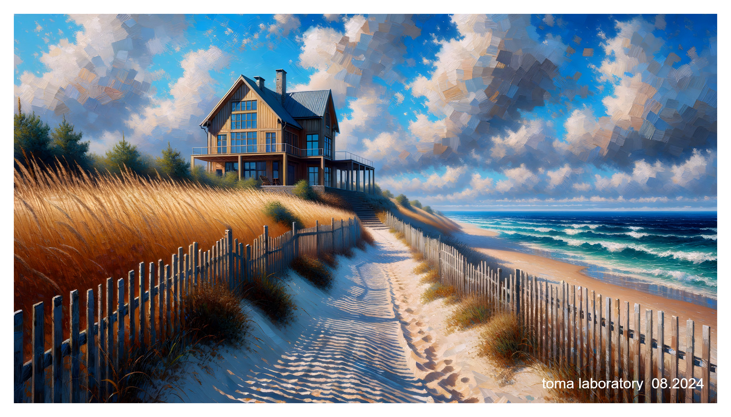 a modern, glass-walled house by a beach at baltic seaside. 08.2024
