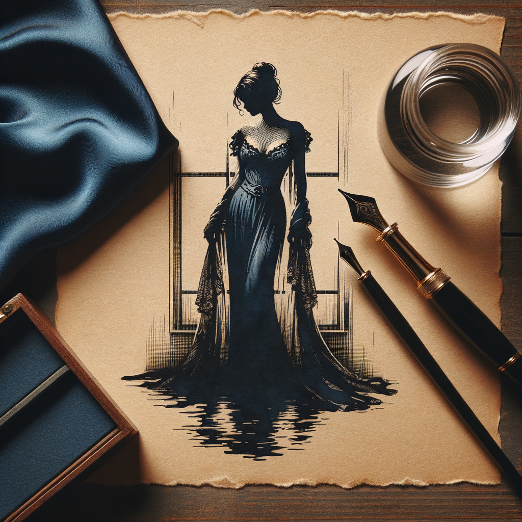 A cubist-style painting of an elegantly dressed woman standing by a microphone with a cello and abstract shapes in the background.