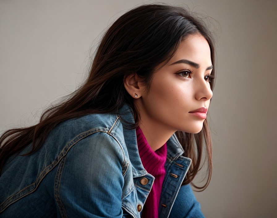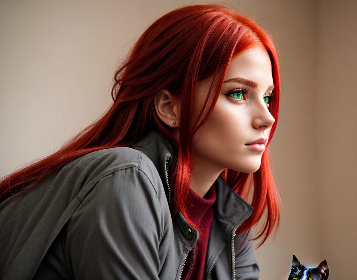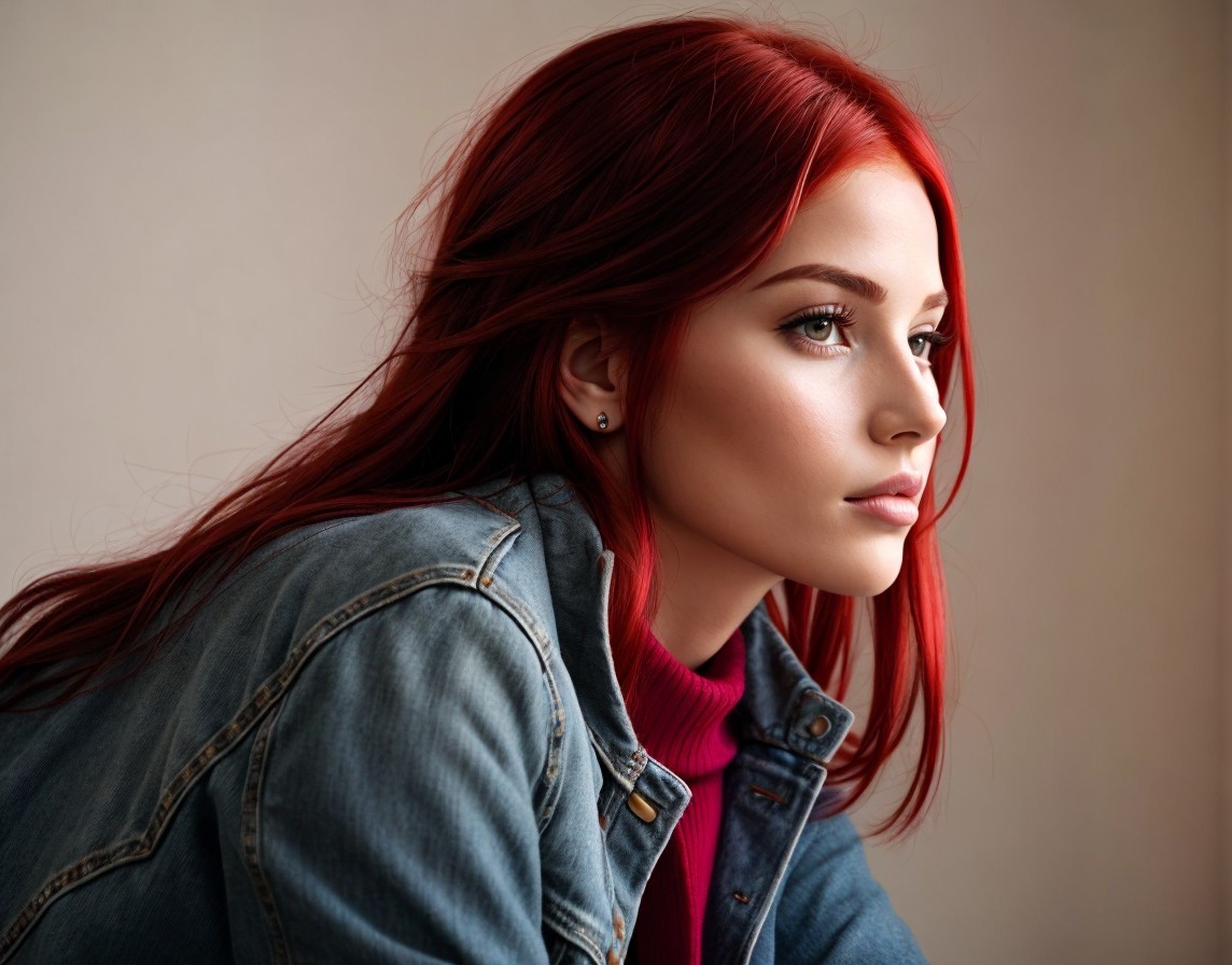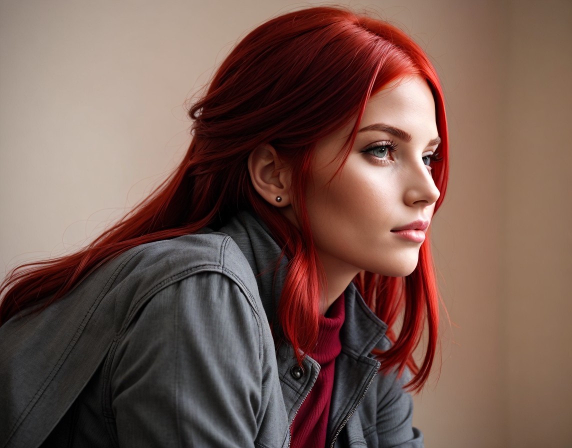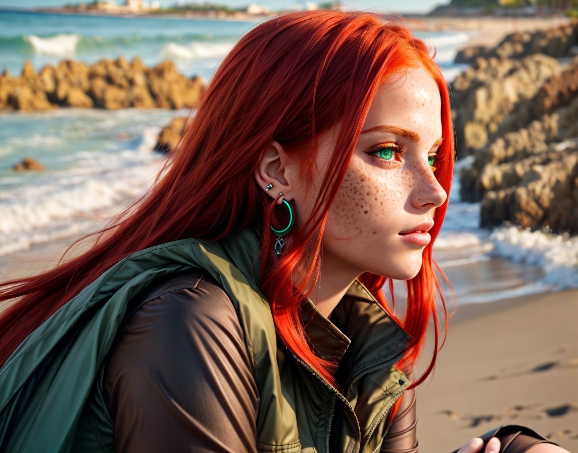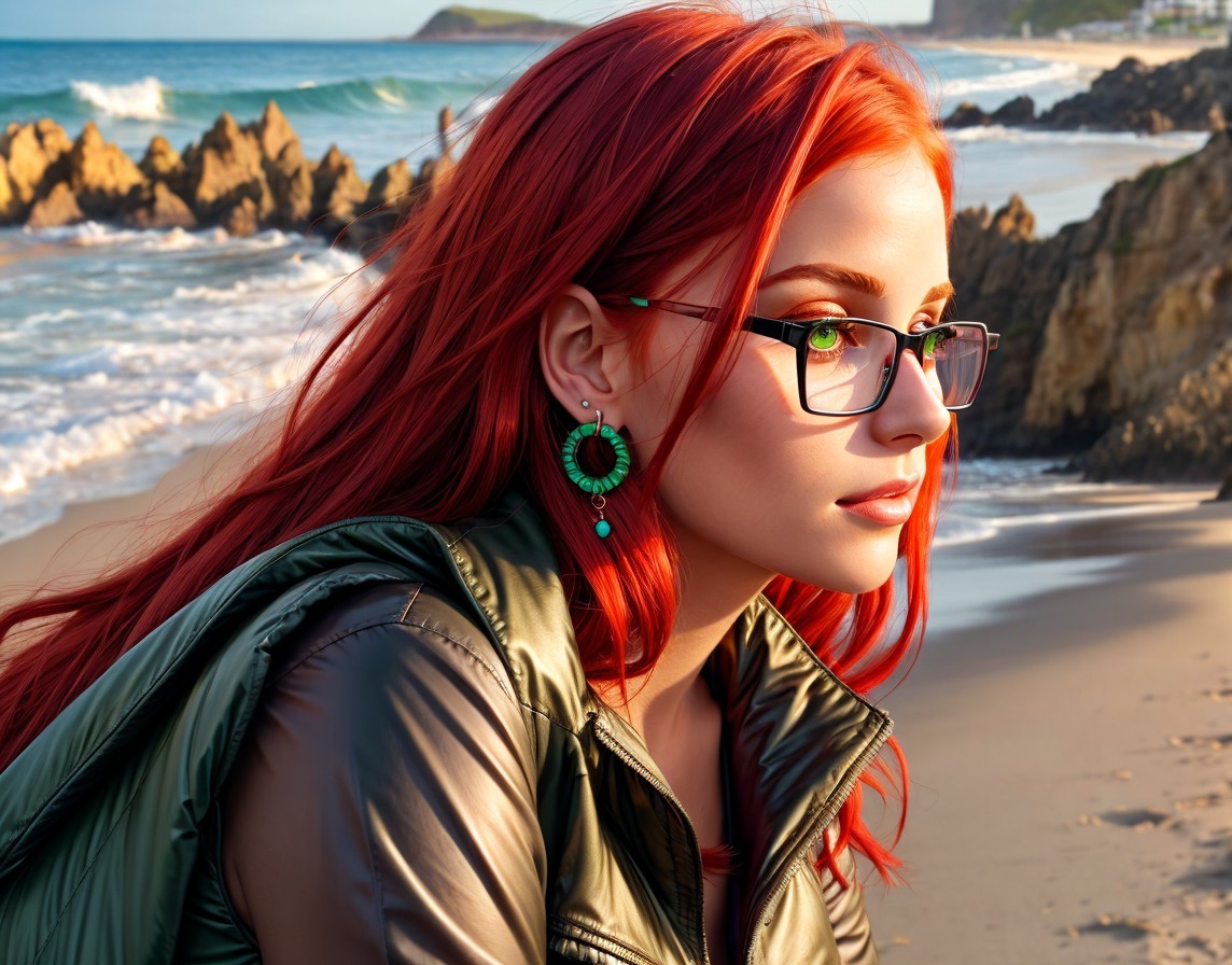 Digital Artwork of Woman with Red Hair at Sunset Beach