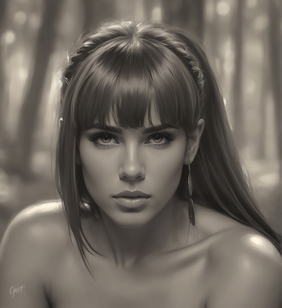 + Prompt:Blotting ink portrait, Style of John William Waterhouse, Boris Vallejo, Keith Parkinson, geet scale hues of Freda people, pencil sketch style merged with pulp art, traumacore 1.2, octane render illustration 1.5, high coloring 1.9, bokeh effects 1.5, Abstract shapes, wide depth, Cel-shaded, warm pastel tones, complex shapes and lines, ultra HD resolution, geimetrucal colour strings enriching the background, emphasizing depth, dramatic lighting from top, chibli reminiscence, triadic color scheme beige grey auburn, wisp-like filigree details in background, plasticity 1.3, watercolor and ink, aquarelle extrusion, thickened warm wax, ink, stippled, tesselated, dynamic lighting 1.7, soft dappled lighting, grunge, coherent charcoal textures 1.3 hatching,