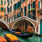 A picturesque view of Venice features charming buildings lining a serene canal, with gondolas gliding through the water under a bright blue sky dotted with fluffy clouds.