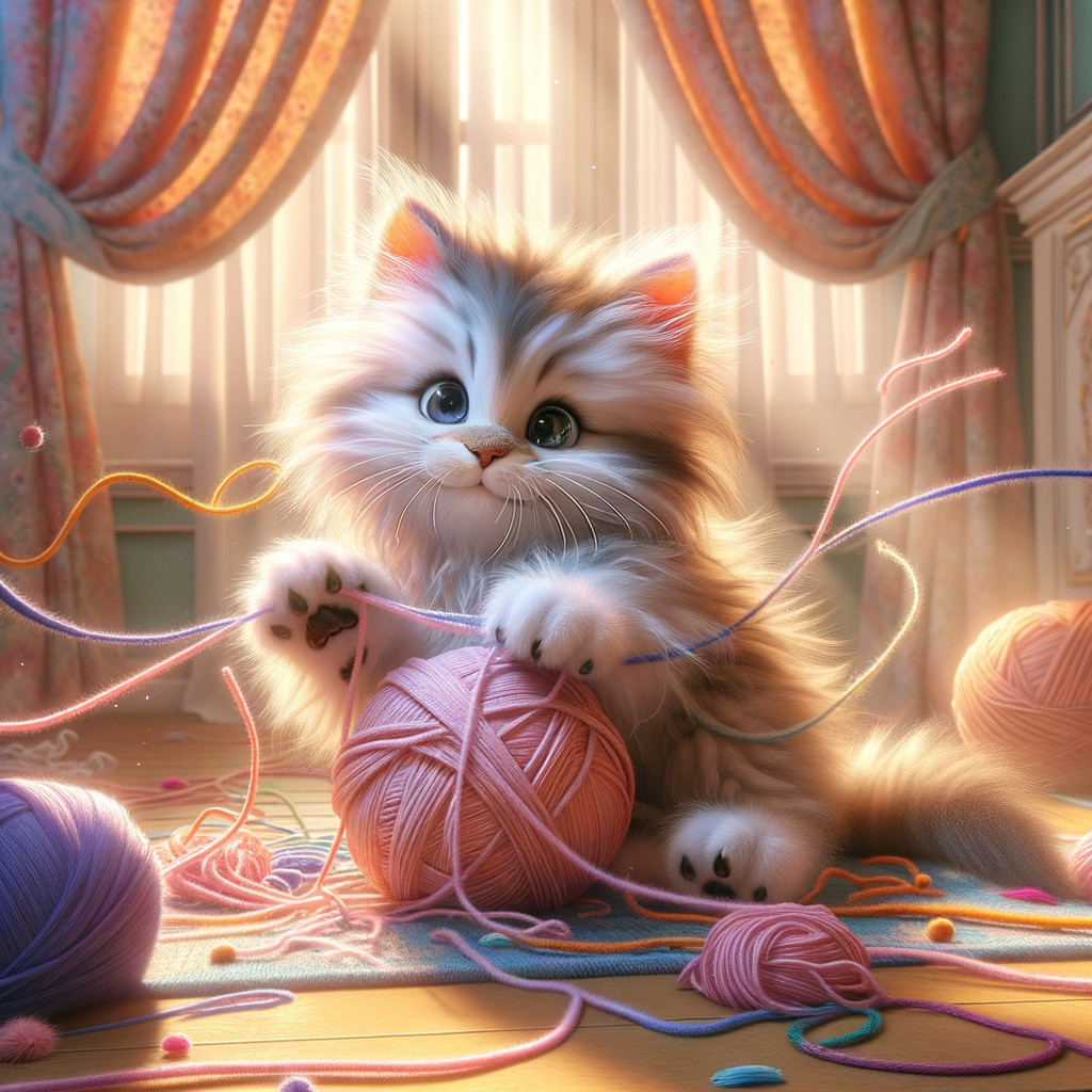 Whiskers and Wool: Playful Kitten in Sunlit Room