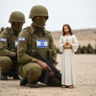 Desert Scene with Soldiers and Girl in Vintage Attire