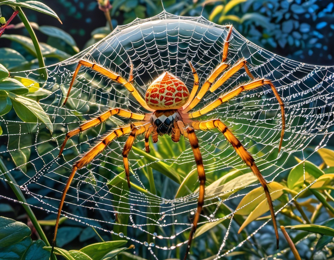 An orb spider is repairing a rent in her web. I featured the webs before, but I decided to show her in all her beautiful color.