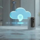 A sleek, rectangular watch with a minimalist white face and blue accents is displayed on a leather strap. The brand "Geowurge" is featured in the bottom left corner, adding a modern touch.
