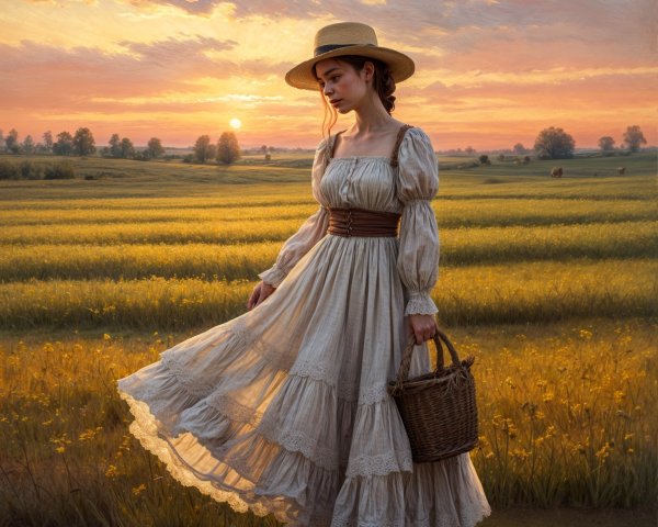 A young woman with long, shiny black hair poses against a background of swirling gold and vibrant red and blue circles, wearing an intricately patterned garment. The scene is strikingly artistic.