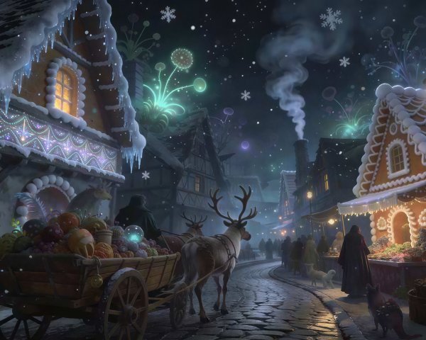 A tranquil harbor at sunset with wooden docks, a tall ship, and an old village reflecting in the calm water, under a warm, cloudy sky.