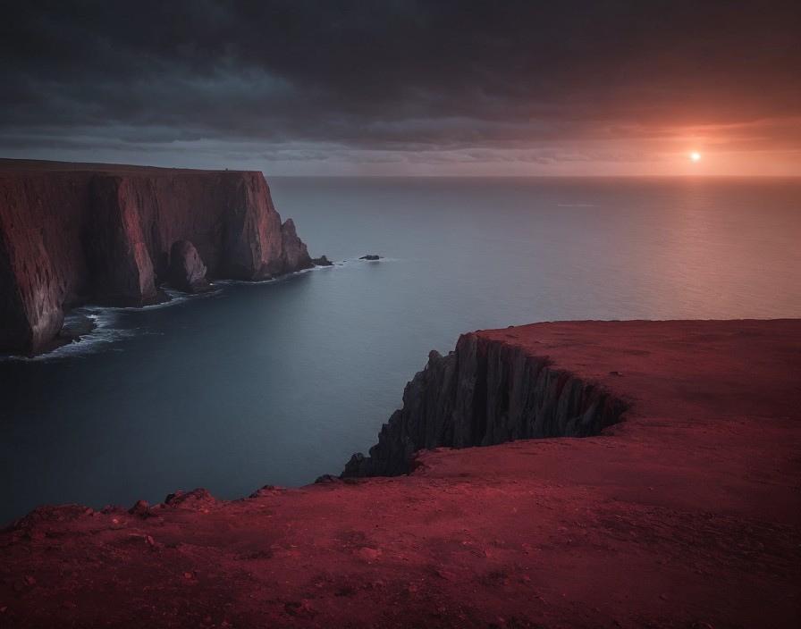 Dramatic Coastline with Cliffs and Twilight Atmosphere