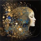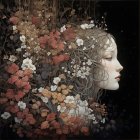 The image features an elegant woman in profile, adorned with a delicate golden butterfly accessory and ornate jewelry, framed by intricate patterns and soft, muted colors, evoking a vintage art style.