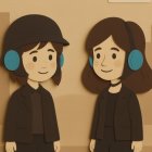 Two stylized figures face each other, with their hair transformed into vibrant autumn leaves. The background is muted, emphasizing the striking contrast of nature and human form.