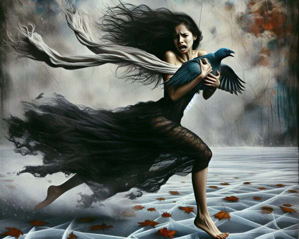 A cozy autumn scene featuring a wooden table adorned with a pumpkin, a basket of grapes, apples, and corn. Colorful autumn leaves add warmth to the rustic setting.