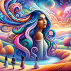 The image features a vibrant, surreal landscape with swirling colors. A large, dreamy face emerges from the backdrop, surrounded by butterflies and abstract figures walking through a whimsical terrain.