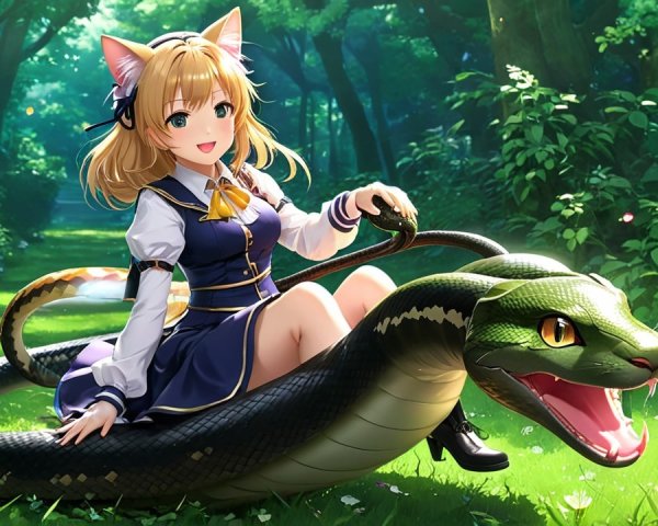 A whimsical catgirl emerges from a vibrant, colorful landfill, blending charm and magic. With playful features and enchanting abilities, she navigates her quirky surroundings with joy and curiosity.