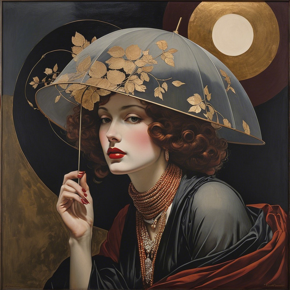 The artwork of Walter Martin Baumhofer and rené gruau is characterized by its whimsical, beautiful, poignant, and touching nature. The color palette often includes shades of rose, gold, rust, burgundy, and black. Artists like Annigoni, Egon Schiele, Milo Manara, Botticelli, Catrin Welz-Stein, Jean Metzinger, and Klimt create soft watercolor pieces with extra water, showcasing an Art Deco style. The attention to detail is evident in the perfect eyes, perfect hands, and highly detailed faces. Complementary colors are used to enhance the overall effect. Watercolor and ink splatters add a dynamic element to the artwork, often set against a dark blue background. Artists like greg rutkowski, loish, rhads, beeple, makoto shinkai, lois van baarle, ilya kuvshinov, rossdraws, tom bagshaw, and alphonse mucha employ techniques like global illumination to create detailed and intricate environments. Other notable artists in this style include Arthur Rackham, Grant Wood, Paul Klee, Lisa Frank, Van Gogh Illustration By Marguerite Delorme, Chokha, Marguerite Zorach, Edward Gorey, and junji ito. The use of gold and silver leaf colors adds a luxurious touch to the artwork