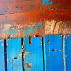 In the background, depict a serene village with several buildings, characterized by bright blue and yellow shades. A prominent church steeple should rise in the center, and gentle rolling hills should extend in the distance. Add a bold, deep red sun setting behind the horizon, casting warm colors across the sky, which transitions from orange to pale yellow. Include wispy, stylized clouds that complement the sunset.