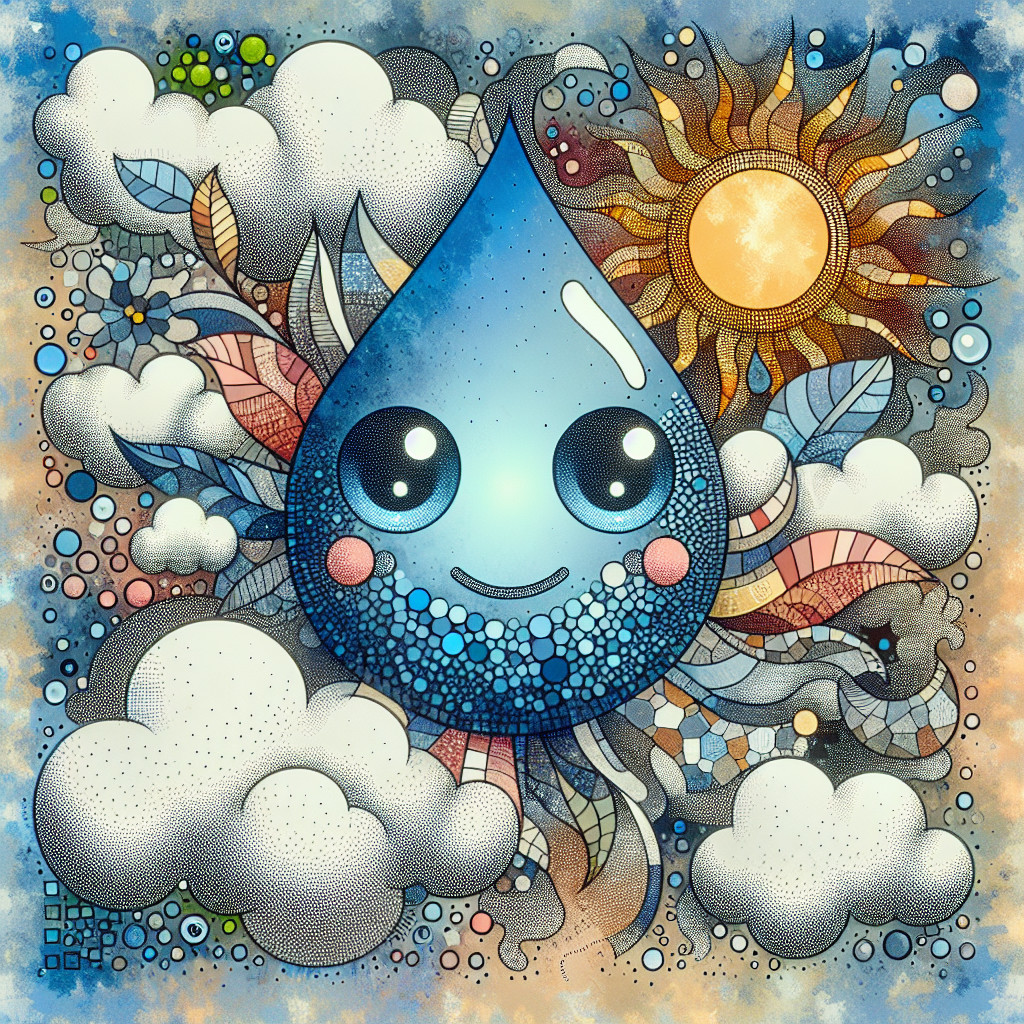 A woman in a vintage dress with intricate lace details holds a bright yellow umbrella. She stands against a backdrop of swirling clouds, blending elegance with a whimsical atmosphere.