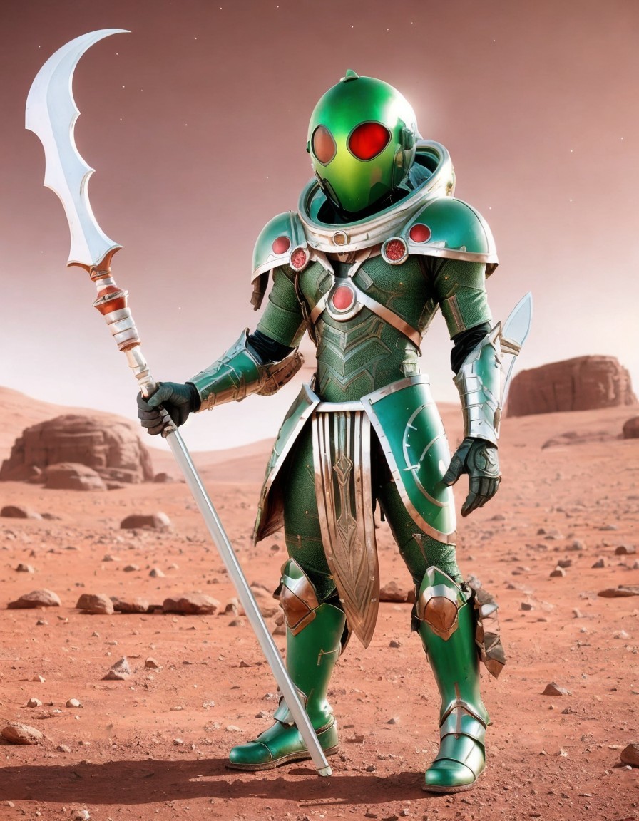 A Martian gladiator on the red sand planet of Mars.