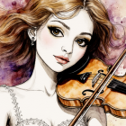 Masterpiece, a delicate ink and watercolor wash rendering on rough handmade paper. A captivating muppet version of Caroline Campbell emerges, radiating a blend of classical elegance and whimsical charm. Her form is rendered with vibrant, expressive line art fine quill strokes define her graceful silhouette, large, expressive muppet eyes, and flowing hair, washed in soft shades of honey, ivory, and rose. Her expression is unmistakably Caroline: poised, intense, and subtly seductive, with a focused gaze that hints at deep musical passion. She holds her violin with a mix of precision and playful flair, the instrument depicted with intricate wood-grain textures and delicate strings, rendered through fine ink work and warm amber washes. The bow is caught mid-motion, suggested by a dynamic, sweeping stroke of ink. The background swirls with wet-on-wet watercolor inks rich violets, passionate crimsons, and shimmering golds bleed and bloom into one another, evoking the emotional chaos of Paranoia, Joy, and Fear that music can conjure. Elements of Leonora Carrington’s mystical symbolism and Brian Froud’s organic fantasy appear in the form of subtle, swirling notes and abstract shapes that seem to dance to her melody. A touch of Leonardo da Vinci’s anatomical precision grounds her muppet form in believable grace, while Android Jones’ digital-esque vibrancy adds bursts of electric color. The mood is dramatic, enchanting, and emotionally charged a tribute to the power of music and artistry, reimagined through a lens of surreal, textured fantasy. quirky, seductive, vibrant, surreal, intricate, award-winning, ultra-detailed, high definition, crisp quality, watercolor, ink, rich colors, graceful, screen-filling, atmospheric.