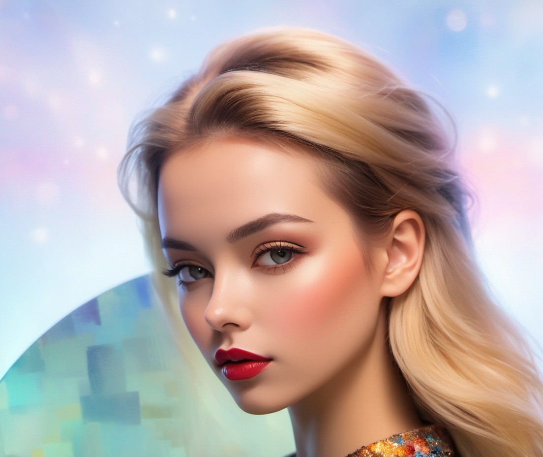 + Prompt:Portrait of female in style of Patrick cabral..big lips fluffy hair. Artistic. 4k. Blonde. Center of the universe. Animals style.