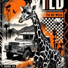 The image features a stylized orange jeep with a majestic tiger perched on top, set against a vibrant sunset with mountains and palm trees, encapsulating a wild, adventurous spirit.