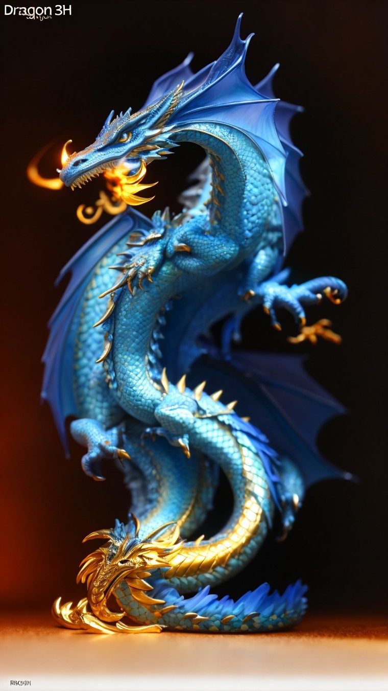 Detailed Blue Dragon Figurine with Multiple Heads and Wings