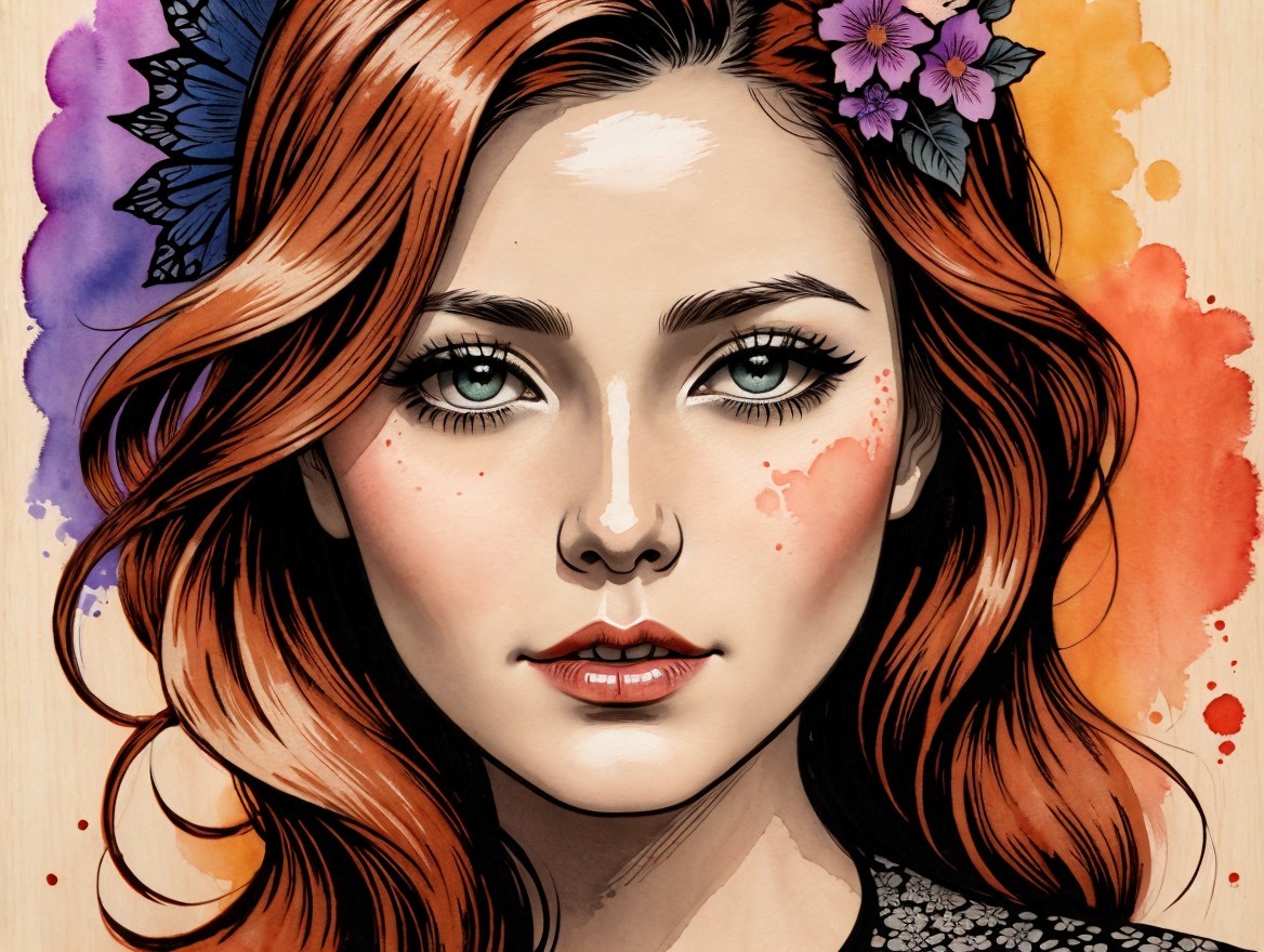 Vivid female headshot in style of Grace Drayton, impossible light transitions, negative lucas numbers, flat image, opaque details, coloring by Man Ray and Ed Binkley, Indiecore-inspired woodblock print featuring a stylized portrait with a juvenile essence, whimsical watercolor and ink painting: Gothic maiden with an eerie twist, stencil style akin to woodcut-inspired graphics by Daniel Gerhartz, texture mapping, phong shading, brightness 1.3, surreal fissured hues in a plique-à-jour technique, complex stylization, dynamic lighting effects, subsurface scattering 1.9, dyed, parallax occlusion 1.3, close-up, stacked-up perspective, cymatics, catenaries, background with fractal effects in style of Richard Serra, teradic color scheme light-pink rosewood-pink lilac light-black, gradient inking for colorful yam, warm coloring, realism reminiscence, hyper-maximalism, soft rounded edges, watercolor and alcoholic aquatint, psychosomatic, dappled tones, contoured, line-art, high coloring, line-art details by Ho Baron. 3D textures, parallax occlusion 1.4, shadow mapping, dof, debeh, bokeh, vfx, LiDAR point cloud with stacked lines, plasticity 1.3, precise gelsculpt 64k emerges, featuring outlines that intricately define 3d effects, uhd, hdr, vfx-inspired, hues by Man Ray, micro-pen lines in Woodblock Print style, textured skin by William Bradley, sawtooth wave, abstracted watercolor and ink by Frank Weston Benson, non-figurative post-impressionism merged with simplistic sketch art, visible colored textures, warm tones, serene line-art features, contoured, exaggerated features, liminal, 3d effects, dof, debeh, bokeh, reflective mapping 1.3, mip-mapping 1.3, warped, detailed stipple texture adds depth, playful and comical, dof, debeh, bokeh, funny, UHD, HDR, negative lucas numbers, LiDAR point cloud, hatching, sculpted, cel-shaded, harsh lighting casts dramatic shadows, inspired by Edward Gorey, Tim Burton, and William Timlin's style, a mix of abstract expressionism and surrealism, scruffy watercolor and oil drawing on textured paper for rich colors and texture, enhanced composition, rich texture and coloring, tesselated orphism effects, stunned, ethereal glow, serene, enchanting, vibrant stylization, magical ambiance, fantasy artwork, intricate details, cel-shaded, soft pastel colors, dreamlike, atmospheric lighting, raytraced shadows 1.3, texture mapping 1.3, stacked lines, Man Ray & Ho Baron inspiration, stippled textures, blotted & cel-shaded, mystical scene, 3 point lighting, zentangle, plasticity, intricate lines, subtle shading, strong expression, linework details, soft warm lighting, gradient inking, rapid lighting transition. pop-art Debbie Criswell's ethereal touch, Ho Baron's & Aliza Razell's magical avant-garde influence, Andre Breton's surrealist vision, Aubrey Beardsley's intricate designs, Catherine Abel's retro flair,