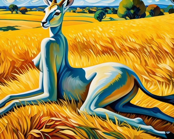 A woman with long blonde hair poses with a paintbrush in hand, standing in front of a vibrant, colorful mural filled with abstract shapes and figures, showcasing her artistic talent.