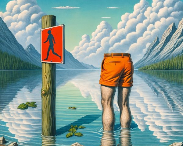A striking portrait of a person with vibrant blue curly hair and face paint in bold yellow and red patterns, set against a bright yellow and blue wavy background, exuding artistic flair.
