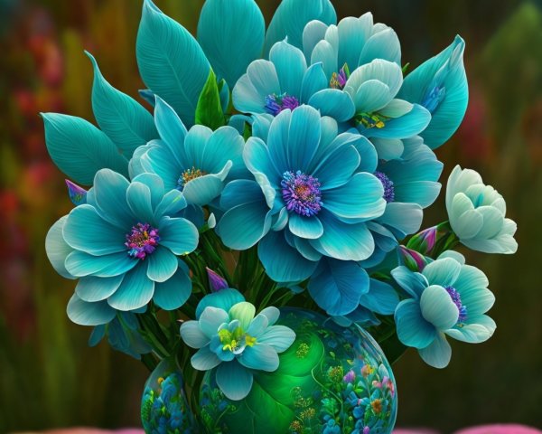 A vivid and surreal landscape with colorful, undulating hills, a multicolored sky, and hot air balloons gently floating above.