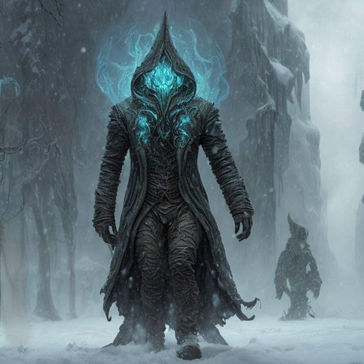 Prompt: A humanoid, lovecraftian aberration in a snowstorm.