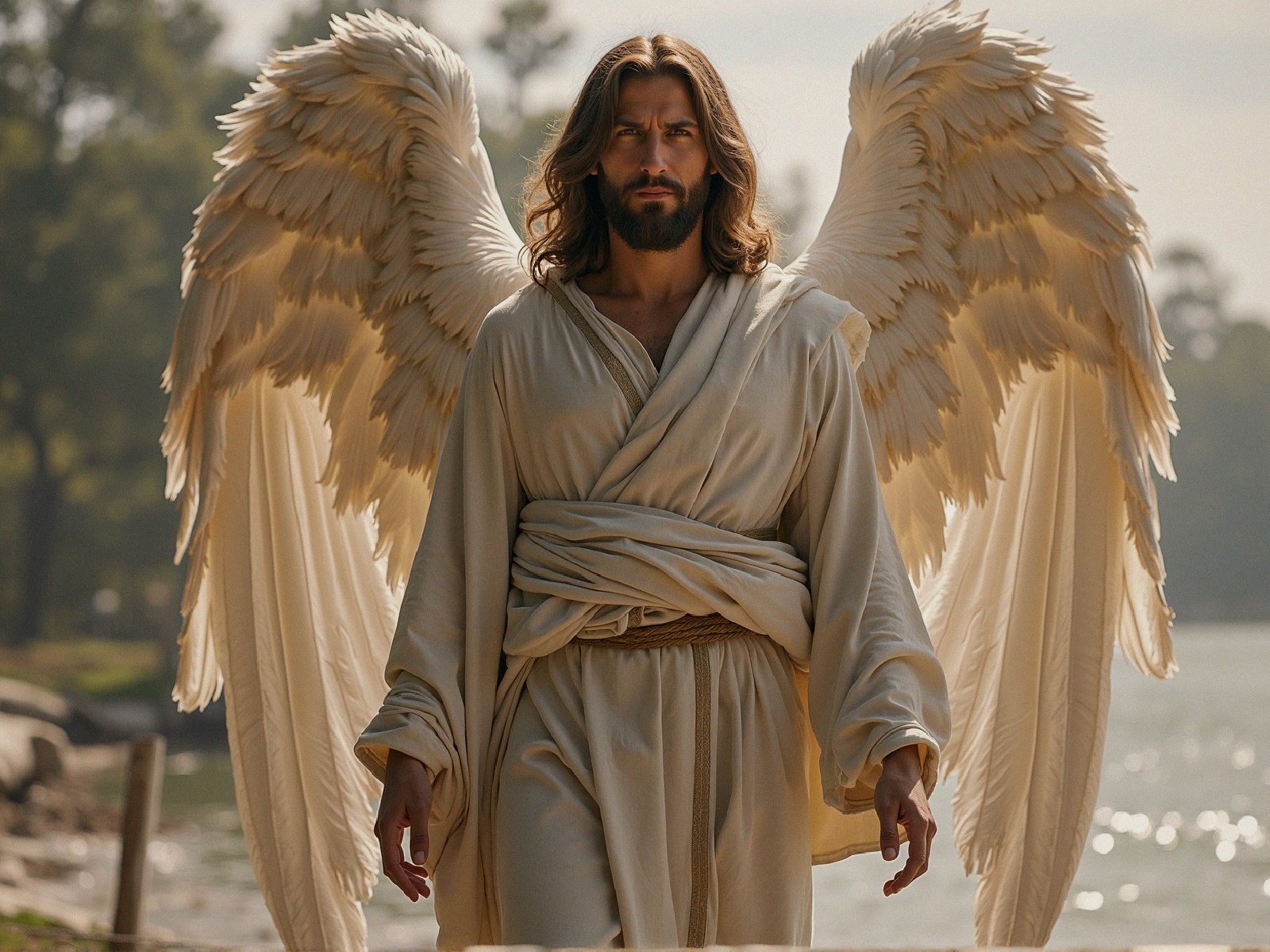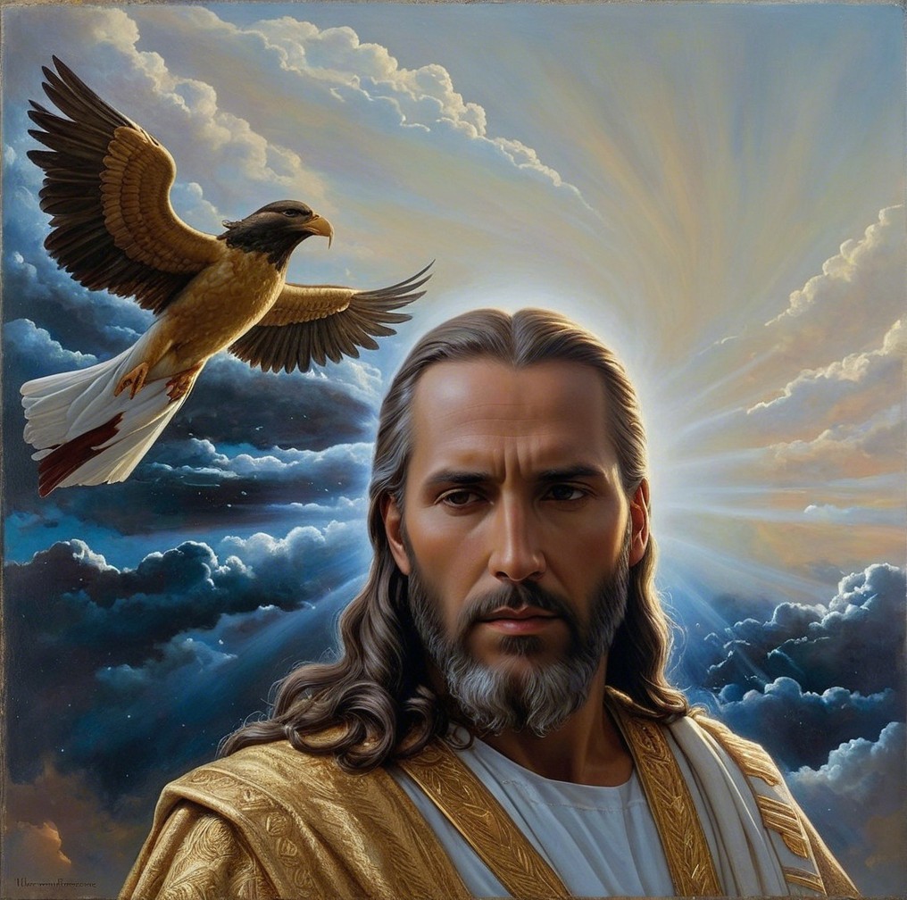 Spiritual authority and connection: The wings symbolize Jesus's connection to the spiritual realm, his role as a divine messenger, and his authority over heaven and earth.