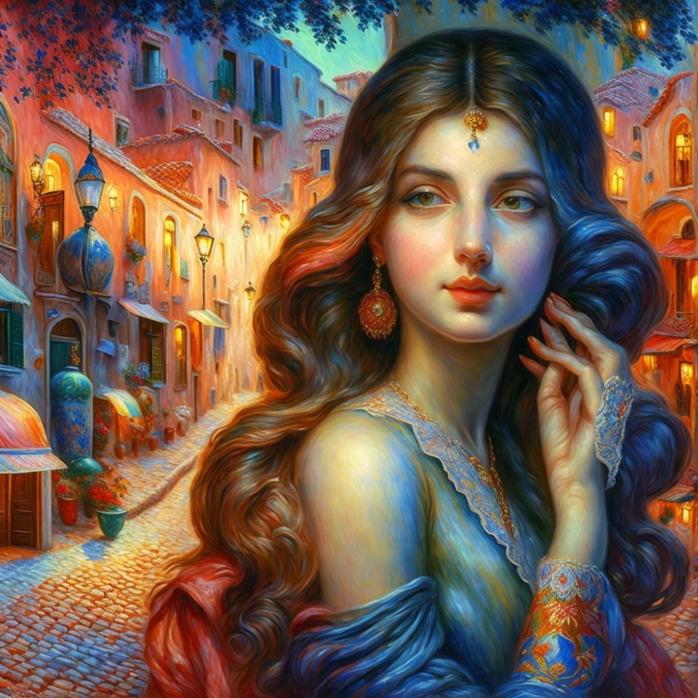 + Prompt:A unique landscape of an old street in Lisbon with colorful cafes and walls decorated with Portuguese Azulejo tiles. digital painting Landscape Pierre-Auguste Renoir Panoramic View street-level view Impressionism School, instant picture of the moment, light reflections and atmospheric effects in the style of Eduardo de La Roya.