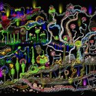 Whimsical Houses Amid Twisted Trees and Colorful Foliage