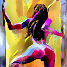 Stylized Figure in Vibrant Abstract Composition
