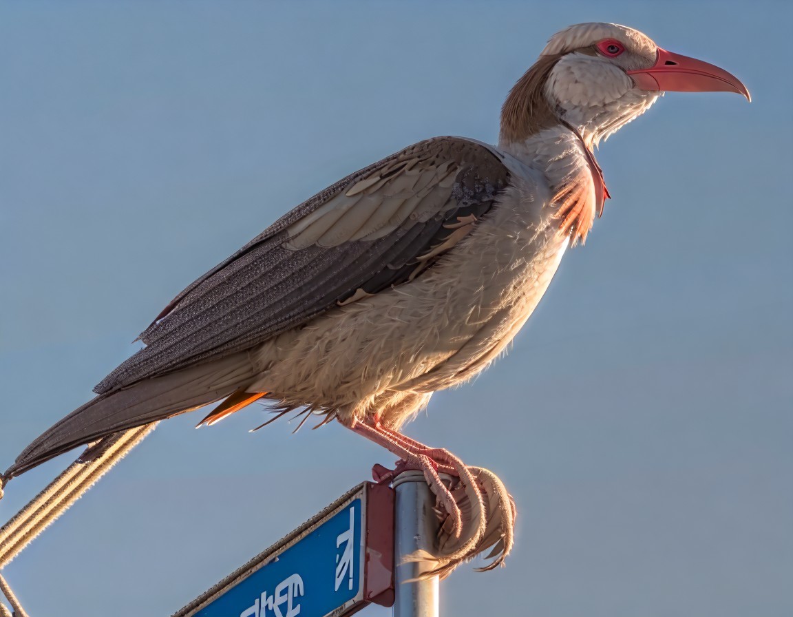 The image features a stylized bird with a large, colorful beak and distinctive plumage, perched confidently against a plain background, exuding a playful and vibrant appearance.