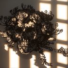 A stunning wall art piece features a silhouette of a sprawling tree against a vibrant sunset backdrop. Shadows create a dynamic interplay with light, enhancing the intricate detailing of the design.