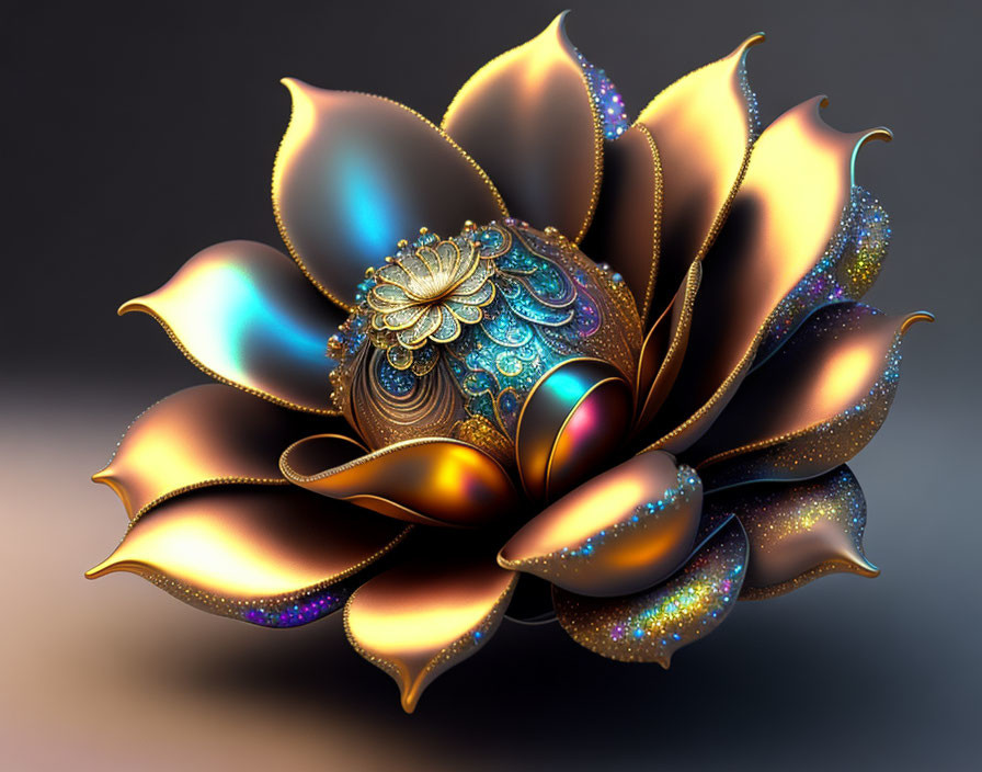 Prompt: a painting of a metallic flower on a gray background, an airbrush painting zbrush central, cloisonnism, high detail, detailed painting, biomorphic, bubbles, exotic, alien hybrids.