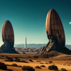 A vibrant, futuristic cityscape at night, illuminated by neon lights. A sleek rocket stands prominently in the foreground, with a large planet looming in a starry sky, creating a captivating sci-fi atmosphere.