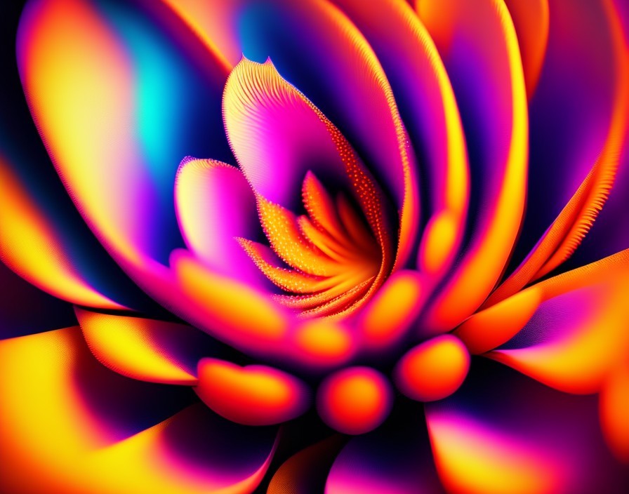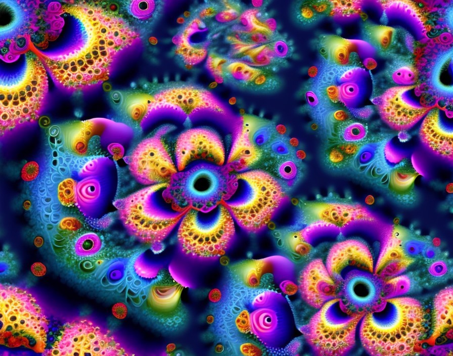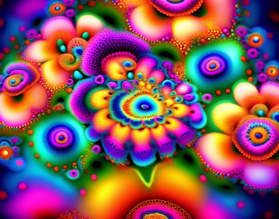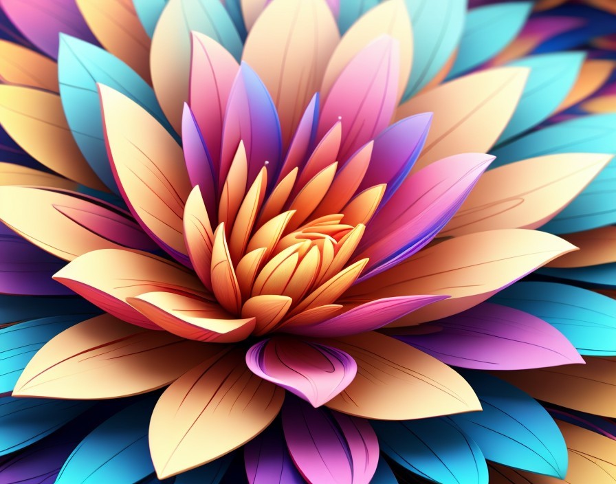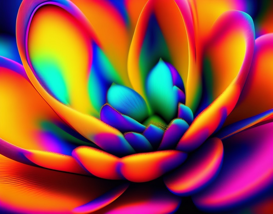 Vibrant, multi-colored digital lotus flowers bloom against a dark background, creating a mesmerizing, kaleidoscopic effect. Image by @laxmijayaraj