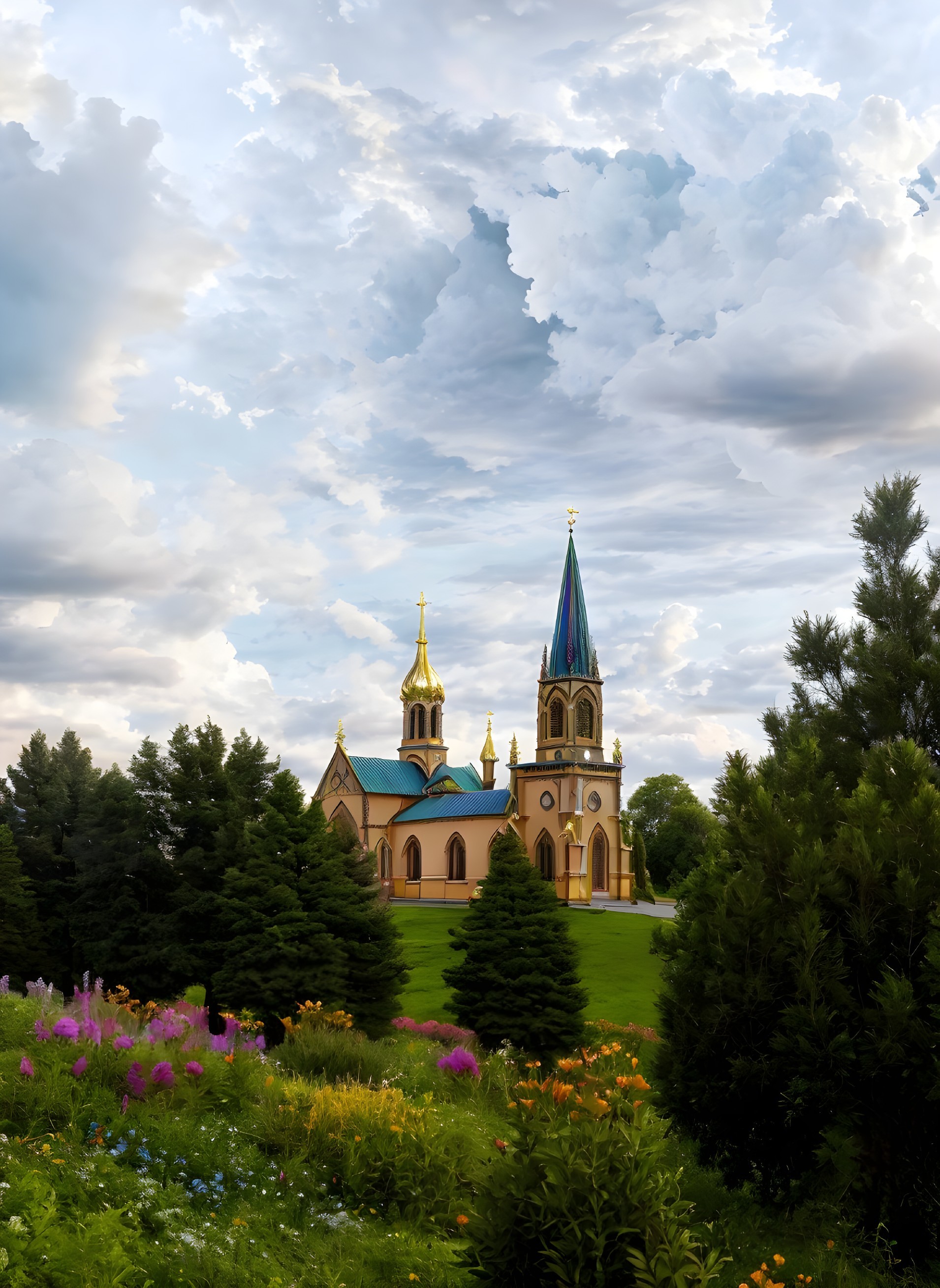 Base photo is taken by me in the south of my region. This is a wooden church of Our Lady built by ancient Russian technology without using nails.