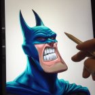 A fierce, muscular superhero in a blue mask and cape, shouting with intensity. His chiseled face and fierce expression convey determination and strength, embodying the spirit of a vigilante.