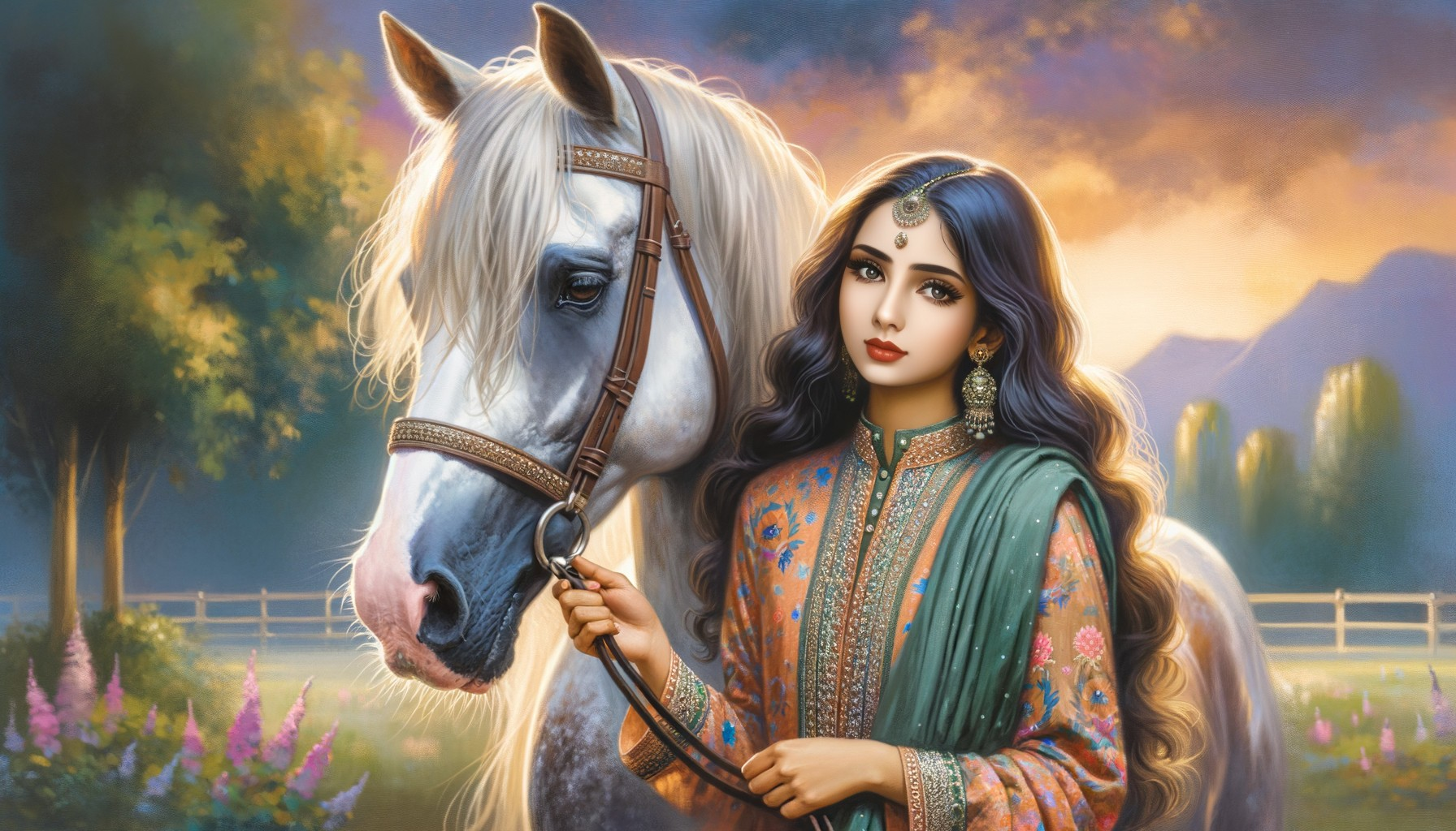 A stunning digital painting featuring a young girl with a horse, capturing a moment of beauty and connection between the two subjects.