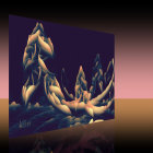 The image features an abstract landscape resembling underwater life, with vibrant yellow forms resembling jellyfish and coral, set against a gradient background of deep purple and soft orange.
