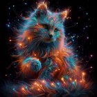 Majestic Cat Surrounded by Colorful Lights and Stars