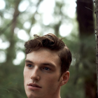A young man stands in a softly blurred forest setting, with gentle light filtering through the trees. His expression is contemplative, framed by natural greenery and a tranquil atmosphere.