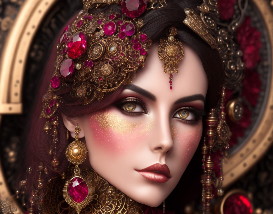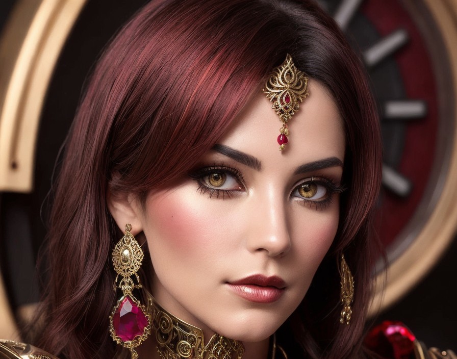Close-up of Woman with Gold and Ruby Jewelry
